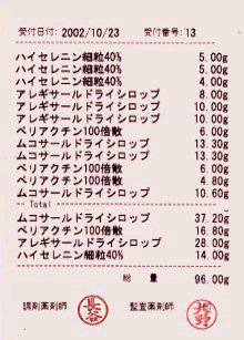 補充・充填時の薬品チェックへの応用散剤の充填の基本は、1銘柄づつ薬品庫から出しては仕舞、出しては仕舞を繰りかえすしかないと思います。作業効率を上げようと複数銘柄の大箱を調剤台に出してはいけません。「二人の薬剤師で確認しあいながら充填する」と言うのも理想的なんですが、相互依存心から真剣さが欠けたり、無駄話をしながらでは、逆効果になってしまいます。 ・薬品充填時に、記録紙を残して、最終確認(この方法はユーザのHiro先生の発案です。推奨します。) |